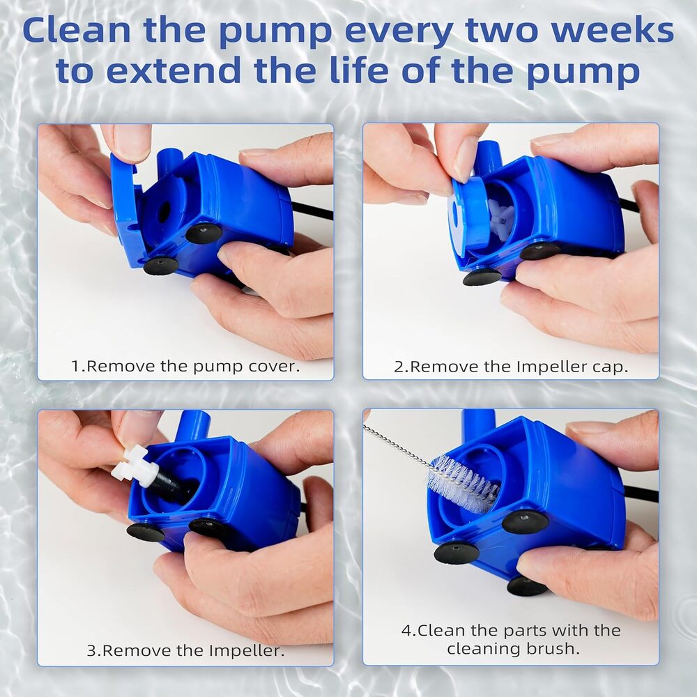 • Limpiar regularmente la bomba de fuente para mascotas cada dos semanas es vital para la salud de tu mascota y la longevidad de la fuente.