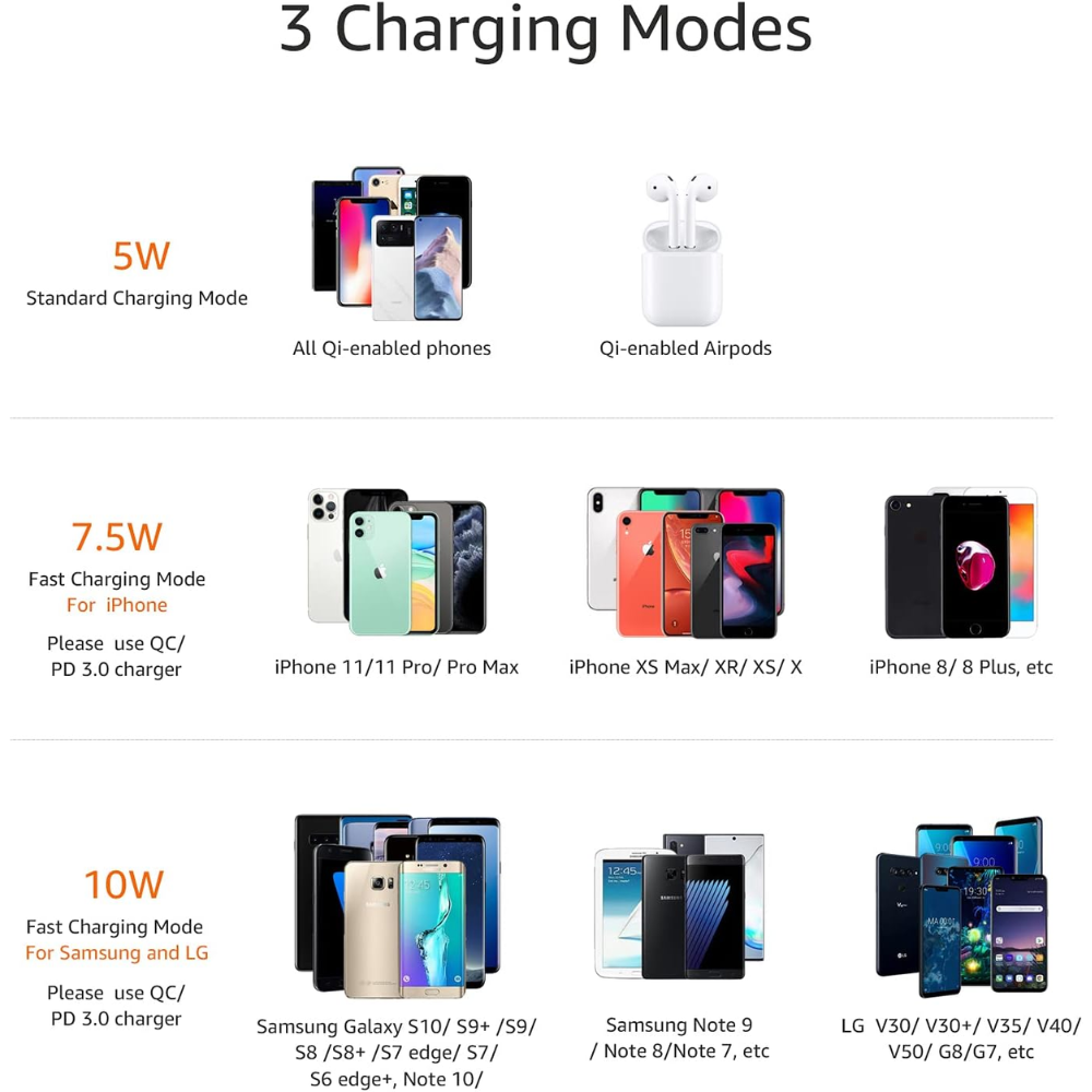 Cargador Inalambrico Doble Amazon 2x10Watts Incluye Adaptador AC color Negro B0872QFB34