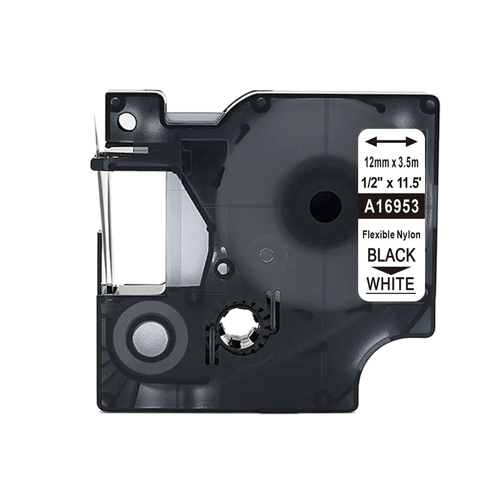 Cinta Dymo D1 Labelmanager Flexible texto Negro fondo Blanco 12mm x 3.5m 16953