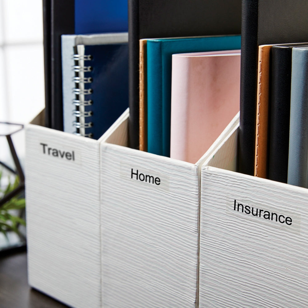• Cinta Dymo D1 de 12 mm, en color negro sobre transparente, diseñada para ofrecer una opción de etiquetado discreta y profesional.