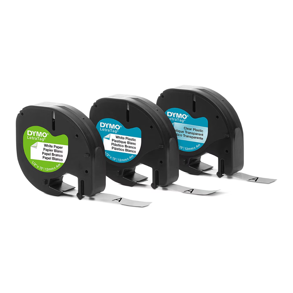 Kit 3 Piezas Cinta Dymo Letratag 1xPlastico Blanco 1xPlastico Transparente 1xPapel Blanco 12mm x 4m 12331
