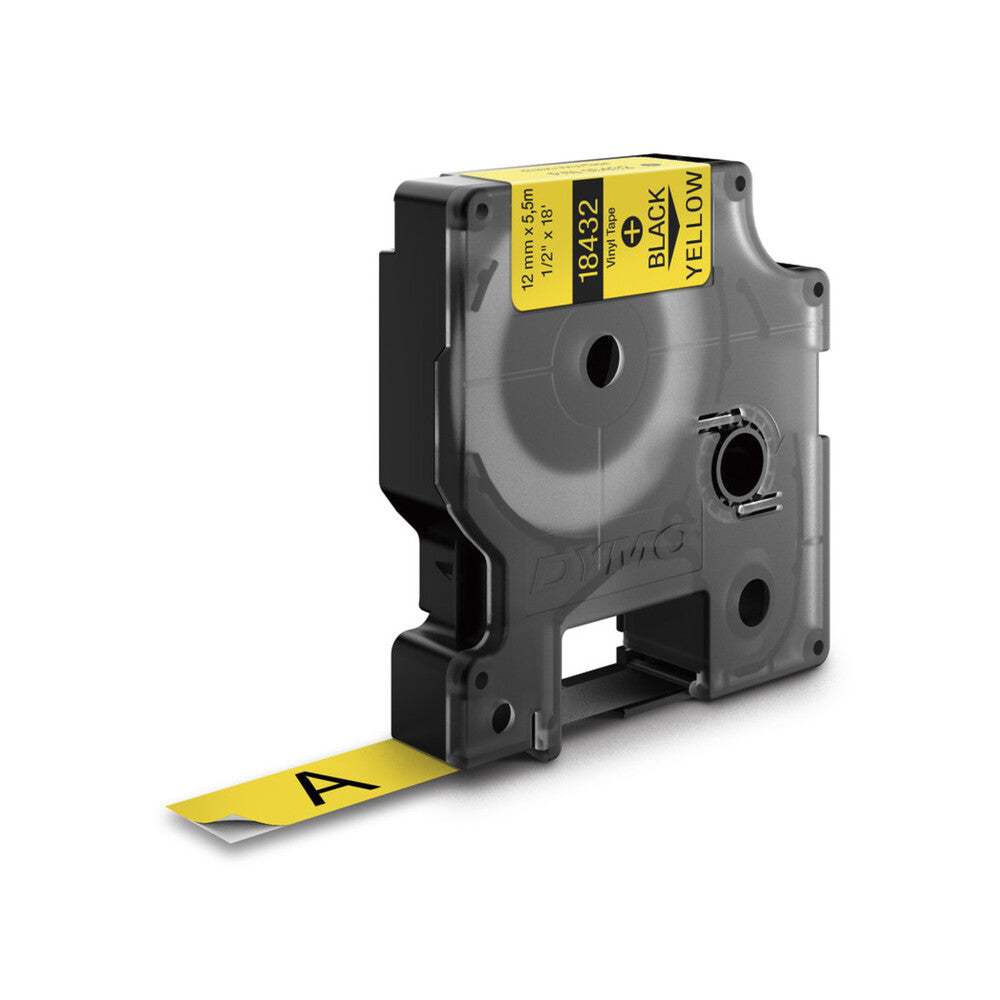 Cinta Dymo Rhino Industrial Vinil texto Negro fondo Amarillo 12mm x 5.5m 18432